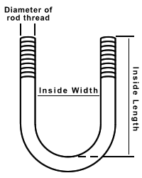 2. Inside Width. This is the distance from one inside edge of the U-Bolt to the other. It is not center-to-center or outside-to-outside.