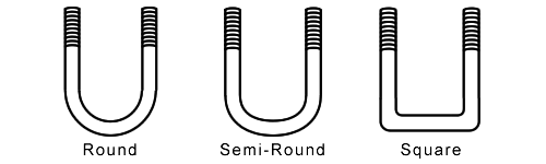 • You must choose the correct U-Bolt shape for your application – round, semi-round, or square. Square will not substitute for semi-round, nor will semi-round work in place of round, and so on.